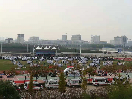 为普及卫生应急知识技能,提升全市人民卫生应急素养和自救互救能力,11月14日下午,周口市全民自救互救卫生应急知识技能“十县百场”普及活动启动仪式在beat365中文官方网站举行。周口市副市长张广东、beat365中文官方网站校长李清臣、和市卫计委、市应急办、市红十字会等单位人员及beat365中文官方网站4000多名师生参加了启动仪式。