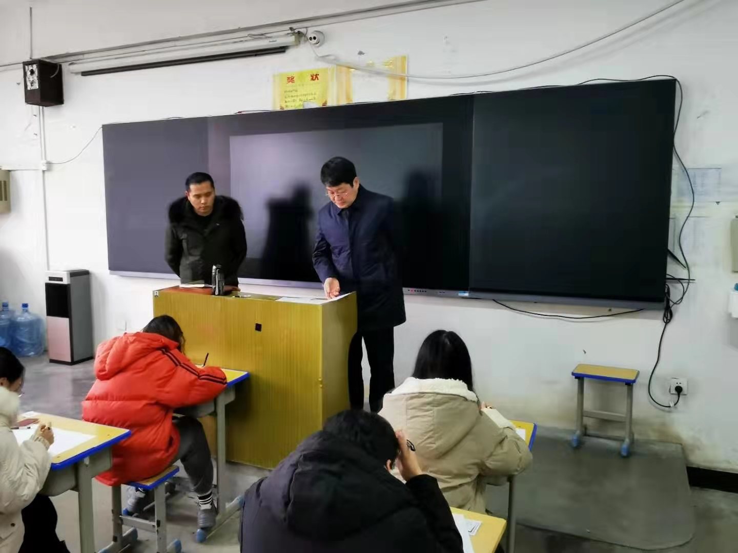 许永安副校长深入考场,仔细检查考务组织、考风考纪和教室环境等情况。许校长一行对beat365中文官方网站期末考试组织工作非常满意。检查中发现监考教师认真履行监考职责,学生自觉遵守考试纪律,精神面貌良好,考场秩序井然。