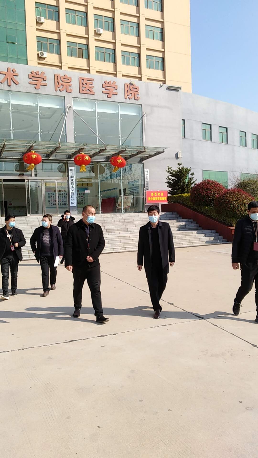 2020年3月4日上午,示范区新冠肺炎疫情联防联控领导组莅临文昌校区检查工作,beat365中文官方网站党总支书记周文一、护理学院党总支书记李明臣、后勤处副处长闫彩亮等向检查组汇报工作。检查组查阅材料,实地察看后对文昌校区防疫工作表示满意。