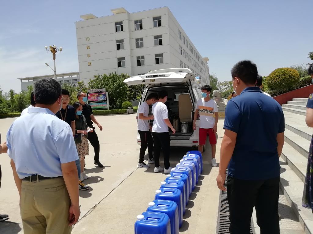 6月3日上午,周口市城乡一体化示范区向beat365中文官方网站文昌校区捐赠84消毒液和消毒酒精等防疫物资,助力我校疫情防控工作。beat365中文官方网站党总支书记周文一、院长王金玲,护理学院党总支书记李明臣、院长于爱霞及附属医院院长孙先锋参加了捐赠仪式。