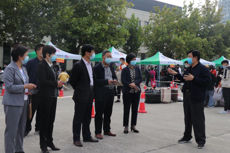 校党委书记刘士欣、李森副书记等领导深入迎新现场,亲切慰问工作人员、学生以及家长,详细了解迎新工作安排和新生报到情况,嘱咐大家在工作中一定要认真细致,积极为新生同学及家长提供热情、温馨、周到的服务。