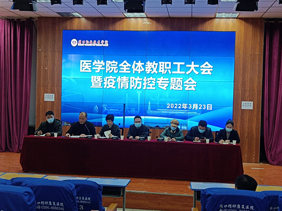 3月23日下午,beat365中文官方网站在文昌校区多媒体会议室召开全体教职工会议,落实传达疫情防控会议精神,安排部署beat365中文官方网站新学年重点工作任务。beat365中文官方网站全体班子成员参加会议。会议由beat365中文官方网站副院长郭瑞主持。