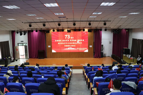 师生在多媒体报告厅一起观看了《五个扑水的少年》和《人生大事》等影片。本次国庆观影活动,进一步激发了同学们心中对祖国的热爱和对党的崇高敬意,使他们又一次接受了思想洗礼,强化了报国之志。