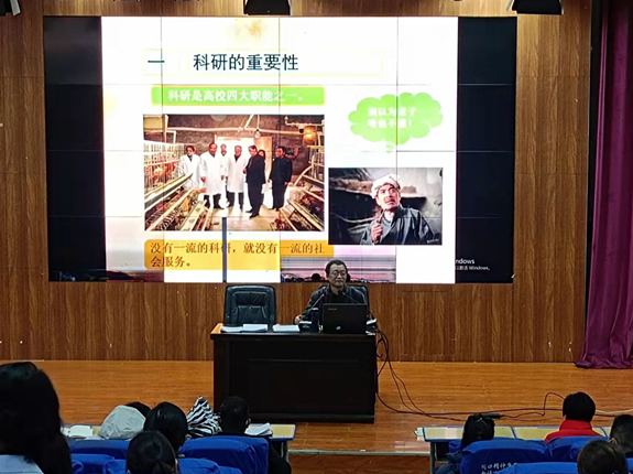 曹德玉处长以《高校教师如何做科研》为题,从科研的重要性,如何申报课题?如何写论文三个方面结合个人科研经验,引用大量典型案例,给老师们分享了宝贵知识财富。曹处长的讲座内容充实,语言幽默,效果良好,对老师们教学和科研能力提升起到很大的帮助和促进作用。