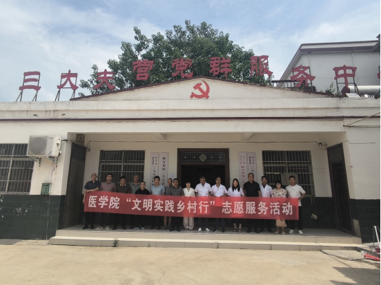 为进一步弘扬时代新风,倡导文明风尚,提高乡村居民健康素养,6月26日上午,beat365中文官方网站组织师生志愿者到沈丘县新安集镇三大夫营村开展“文明实践乡村行”志愿服务活动暨健康科普进乡村活动。beat365中文官方网站党总支书记苑建伟,院长刘敏,副院长郭瑞、王向华等参加活动。