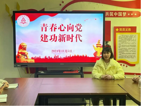 为激励入团积极分子坚定理想信念,在新时代中奋勇拼搏、砥砺前行115日,beat365中文官方网站团总支在行政楼4楼党员活动室开展了入团积极分子培训第六讲“青春心向党,建功新时代”。本次团课由团总支书记聂蕾主讲。