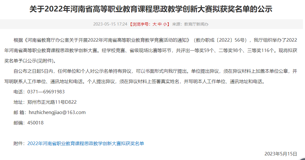 近日,河南省教育厅发布了《关于2022年河南省高等职业教育课程思政教学创新大赛拟获奖名单的公示》名单,beat365官网医学影像技术教师赵燕荣获财经农医相关类课程组一等奖,大学英语教师赵楠荣获公共基础课程组三等奖,实现了beat365官网在省级教学技能竞赛中新的突破。