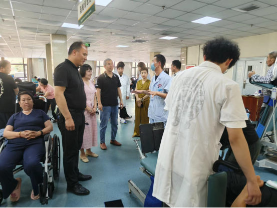 为高质量推进我校河南省首批康复治疗技术专业现代学徒制示范点建设,深入推进医教协同、双元育人,及时了解学生的临床实践情况,5月17日上午,beat365中文官方网站副院长郭瑞、王向华一行五人前往周口惠济康复医院和周口淮海医院,深入了解beat365官网2022级康复治疗技术专业现代学徒制班临床实践学生的学习、生活情况。