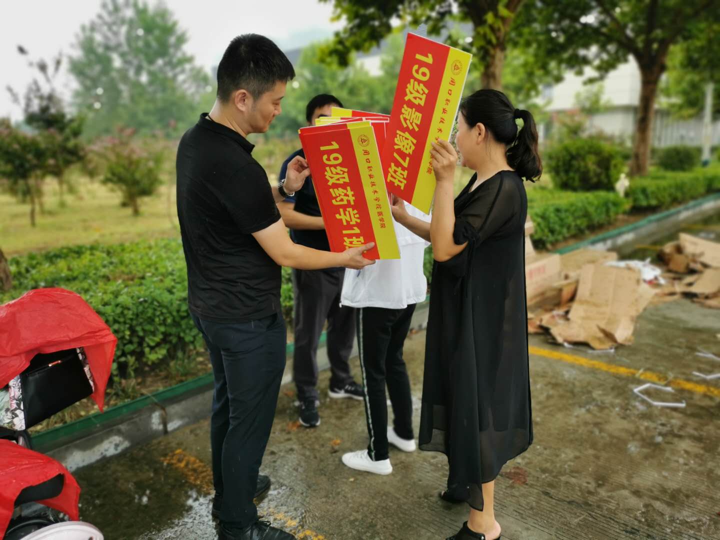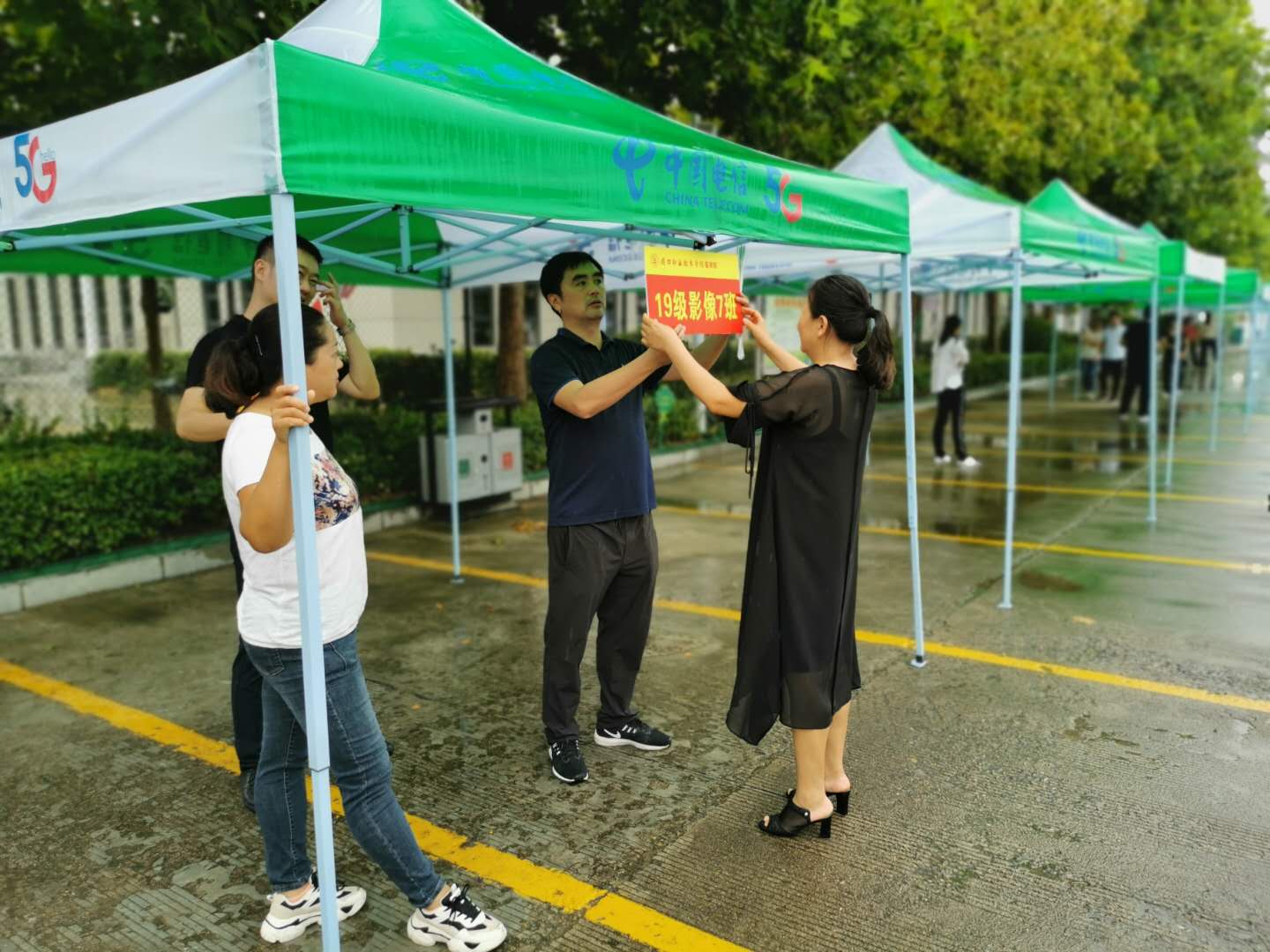 为学生返校工作能够顺利进行,确保全体师生身体健康和生命安全。9月10日上午,beat365中文官方网站学管办主任王向华带领学管办工作人员和2019级学生辅导员冒雨进行搭帐篷,悬挂班级标示牌,积极做好迎接学生返校工作。