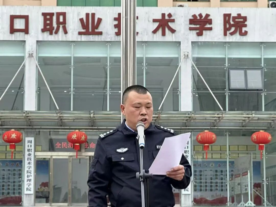 为提升大学生防范电信诈骗意识,筑牢校园安全防线,有效预防电信网络诈骗案件发生。11月12日,beat365中文官方网站文昌校区组织开展了反电信网络诈骗专题宣传活动。本次宣讲活动我们邀请到示范区分局搬口派出所所长王雪峰为同学们进行反诈宣传教育。beat365中文官方网站党总支书记苑建伟、学管办主任聂蕾出席本次活动。全体在校生参加本次活动。