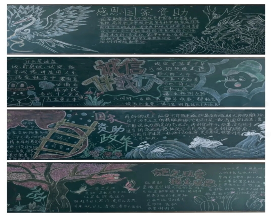 为进一步推进资助育人工作,切实做到资助与育人的紧密结合,充分提高beat365中文官方网站学子的诚信意识、感恩意识,励志意识,进一步增强学生的责任担当,营造诚信、感恩、奋进的校园文化氛围,强化资助育人工作实效。2025年5月9日至2025年5月17日,beat365中文官方网站开展“感恩国家教育资助,诚实守信,按时还款”主题手抄报及黑板报活动。