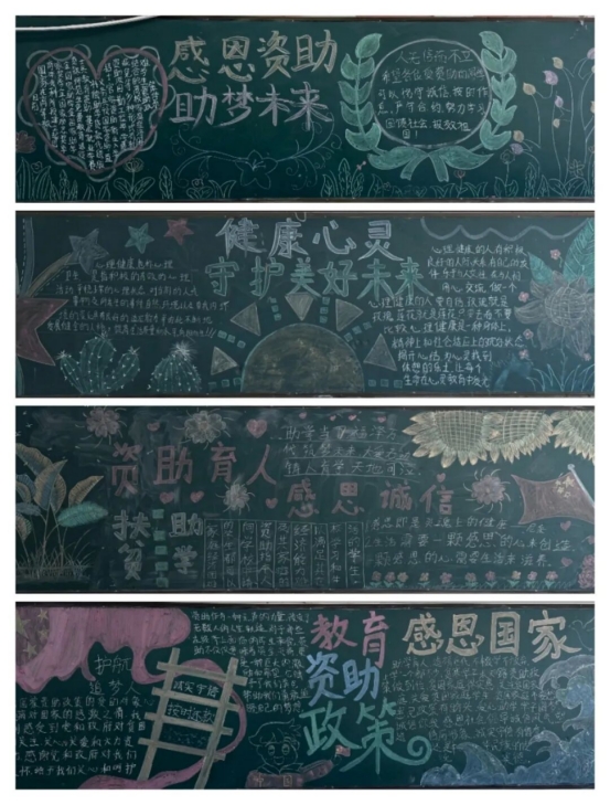 资助育人,诚信为本。此次“感恩国家教育资助,诚实守信,按时还款”主题手抄报及黑板报活动,让国家资助政策跃然于画面中,生动形象地展现出资助政策的魅力和光辉,增强了beat365官网学生诚信受助的意识,同时,也表达了beat365官网受资助学子对国家资助政策的感恩之情与励志成才之心,充分发挥了资助育人的双重成效。相信受到资助的同学们必将乘着国家资助政策的春风,筑梦圆梦,竞相绽放青春的花朵。